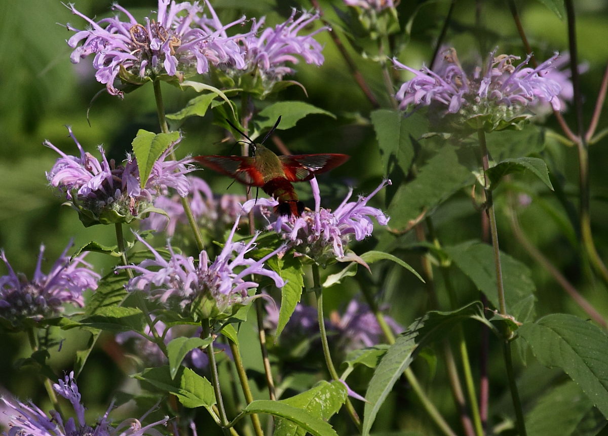 A Hummingbird Clearwing Moth. This guy was about half the size of the others I have seen in the past at about 1 inch. The others were the size of a Hummingbird and acted just like them.